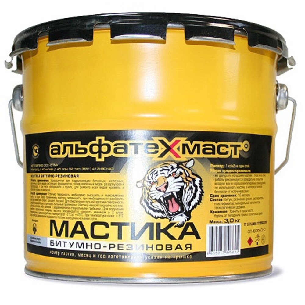 Мастика битумно-резиновая АльфаТехМаст, ведро 3кг